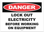 Danger Lock Out Electricity Before Working on Equipment Sticker