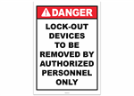 Danger Lockout Devices to be Removed by Authorized Personnel Only Sticker