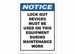 Notice Lock Out Devices Must Be Used on this Equipment During Maintenance Work Sticker