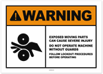 Warning Exposed Moving Parts Can Cause Severe Injury Do Not Operate Machine Without Guards Sticker