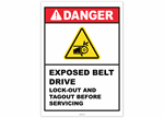 Danger Exposed Belt Drive Lock-out and Tagout Before Servicing Sticker