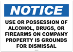 Notice Use of Alcohol Drugs Firearms Grounds for Dismissal Sticker