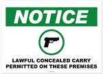 Notice Lawful Concealed Carry Permitted on these Premises Sticker