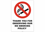Thank You For Observing Our No Smoking Policy Sticker
