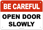 Be Careful Open Door Slowly Sign
