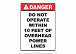 Danger Do Not Operate Within 10 Feet of Overhead Power Lines Sticker