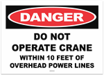 Danger Do Not Operate Crane Within 10 Feet of Overhead Power Lines Sticker