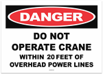Danger Do Not Operate Crane Within 20 Feet of Overhead Power Lines Sticker 2