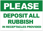 Please Deposit Rubbish in Receptacles Sticker